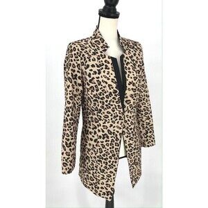 FloryDay Blazer/Suit Womens Leopard Print Long Sleeve Open Front Size Small