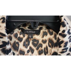 FloryDay Women’s Sz Small Leopard Print Long Sleeve Button-Up Collared Shirt