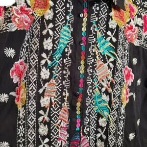 Floryday Black Embroidered Multi Colored Tunic Size Small