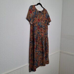 Floryday Floral Babydoll Midi Dress Sz L Mumu Colorful Art-to-Wear Boho 90s