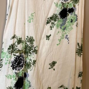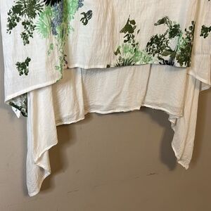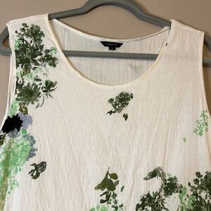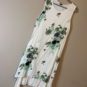 Floryday White with Green Floral Sleeveless Sharkbite Hem Dress - Size Large