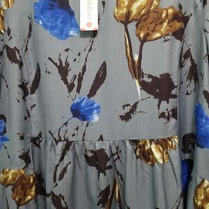 Floryday dusty blue with brown floral print maxi dress, size XL. NWT.