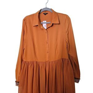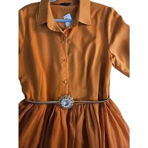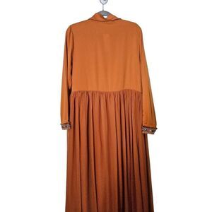 Floryday orange flowy maxi dress with gold belt and embellished cuffs. Size L. N
