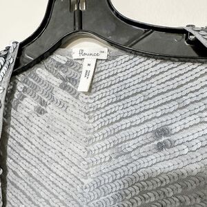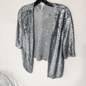 Flounce tbd Open Front Silver Sequined 3/4 Sleeve Jacket Women Size M