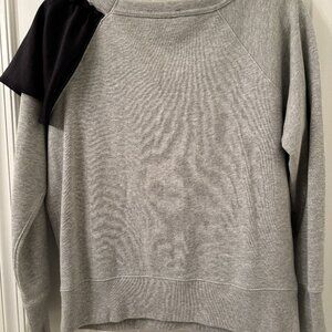 Gray cotton sweatshirt w/satiny ruffle to add a bit of pizazz to your off-duty days. Great condition, no stains or damage--very light wear. Cozy cotton blend crew neck sweatshirt will look great paired with sweats or a denim bottom. TTS