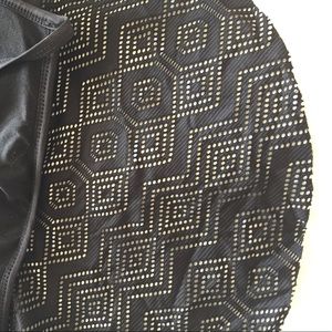 Super cute Apt. 9 flouncy black bikini top! Bought originally at Kohl's. Cute cutout design on top (last picture shows design!) and I lifted up the fancy part to show what it looks like underneath (5th picture). Removable cups inside (tried to show in picture 4), and gold colored adjustable straps and accents (pictures 3 and 4). Worn maybe three times, in absolutely perfect condition! Nothing is wrong with it at all, it just doesn't fit me anymore. Size medium. NO TRADES PLEASE