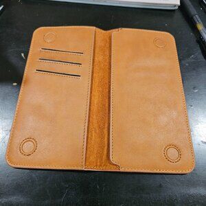 Floveme Tan Leather bi-fold Wallet With Card Slots Billfold