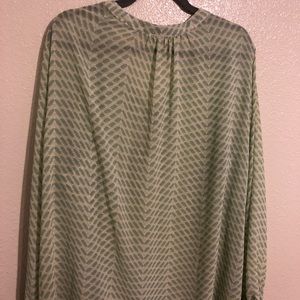 Green light weight polyester blouse lime green and cream bedazzled sequins in the front
