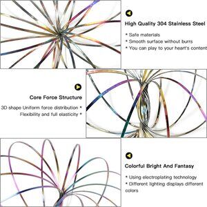Jishi Flow Ring Fidget Spinner Bracelet for Kids & Adults, Stress Relief Sensory Toys for Boys Girls, Stainless Steel Spinning Bracelet Magic Rainbow Iridescent Arm Spiral Twirler, Kids Gifts 8-12 3-5, Flow Ring Magic Bracelet Fidget Arm Spinner Toy - Stainless Steel Metal Spiral Spinning Rings - Rainbow Iridescent.