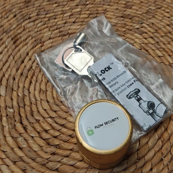 Flow Security lock set with key. Save water by securing your exterior water bib.