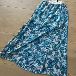 Blue and white tropical maxi skirt with a flattering slit and small short slip underneath.