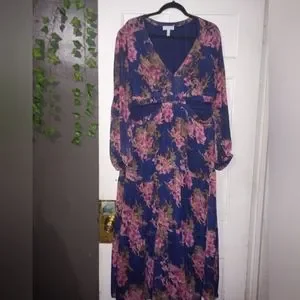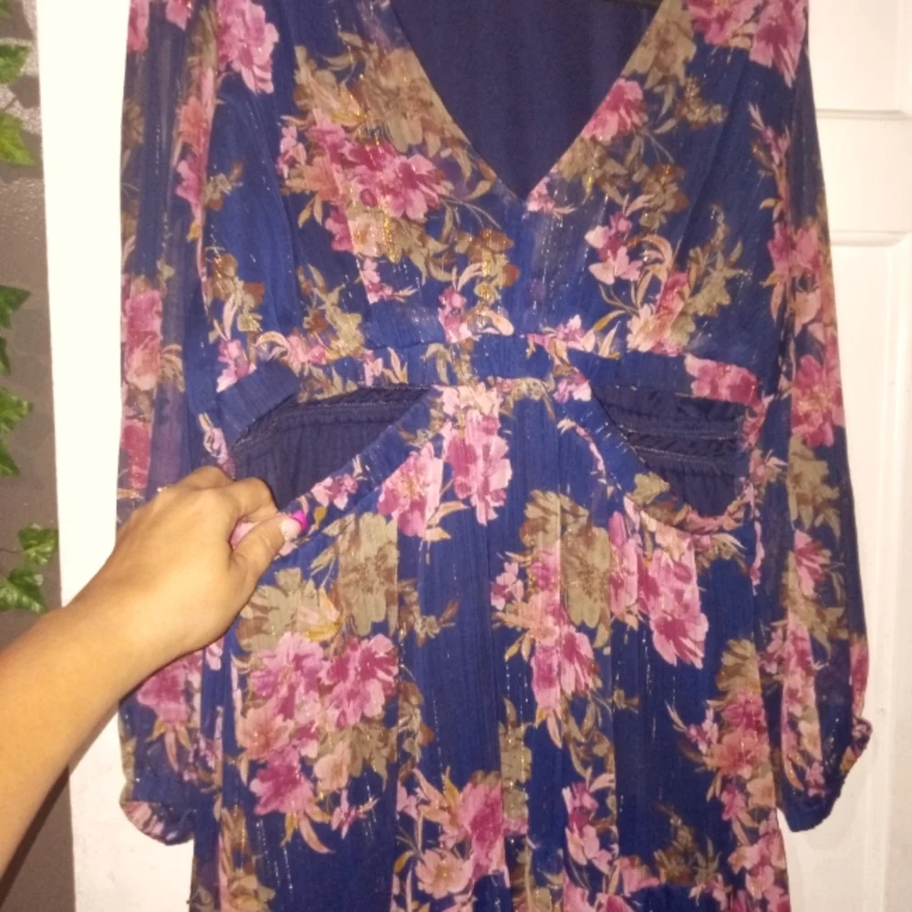 A beautiful long sleeve floral throwover dress with cute and sexy cut outs on the belly is just gorgeous 🥰😍
