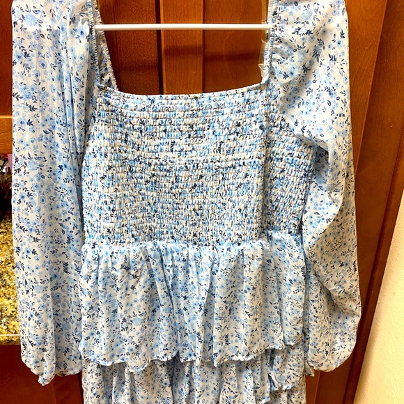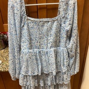 Cute flower, daisy, baby blue ruffle dress never worn, not see-through
