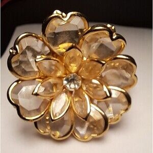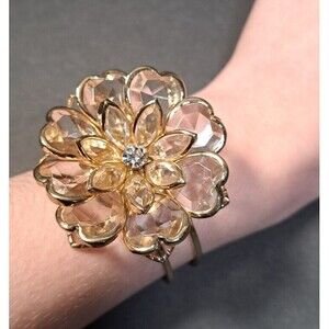Metal Clamper Faceted Big Flower Accent Bracelet Gold-tone Cuff Costume Fun.