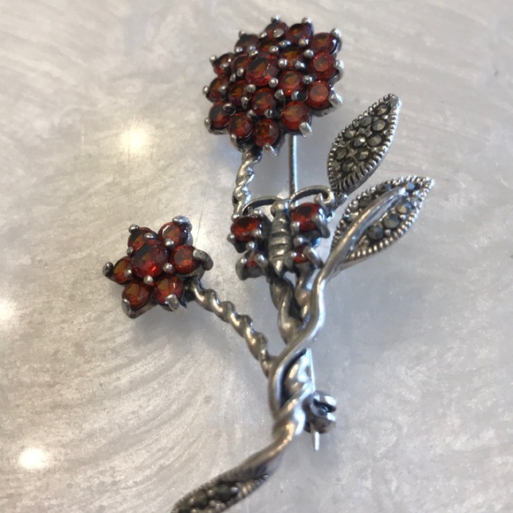 This vintage 925 Ruby sterling silver pendant made into a flower with butterflies and leaves.