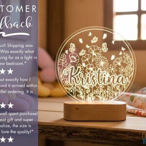 Flower & Butterfly Night Light – Personalized LED Room Decor