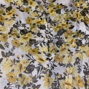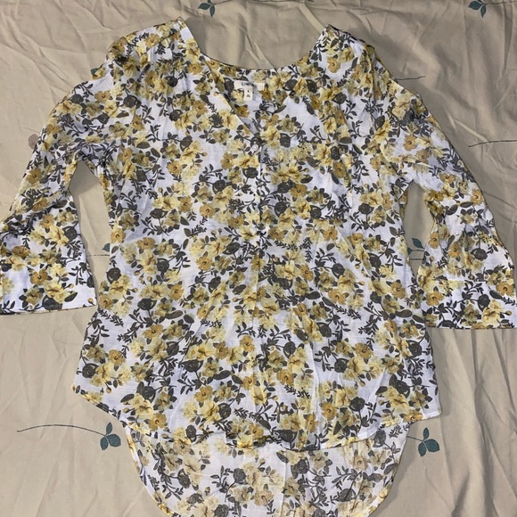 Como Blu, flower button up. Print continued on back. Like new. Flowy, a little longer in the back. Large.