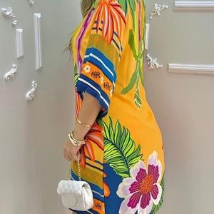 Classy Floral Dress with Bell Sleeves, Retro Round Neckline and Midi Casual Fit. Perfect for Outings or Special Occasions.