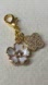 14k gold clover and white enamel flower. The charm has a clip making it easy to bedazzle a necklace, purse, phone, backpack, etc…