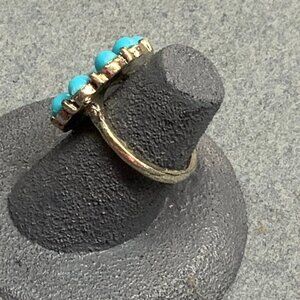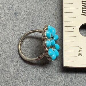 This beautiful vintage ring features a captivating cluster design with turquoise-colored stones, elegantly set in a silver-tone setting.