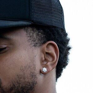 Shining Honey Comb Set Star Stud Earrings For Men: These small silver star earrings are not just fashionable but also durable. The white gold stud earrings are a perfect blend of hip hop jewelry and luxury.