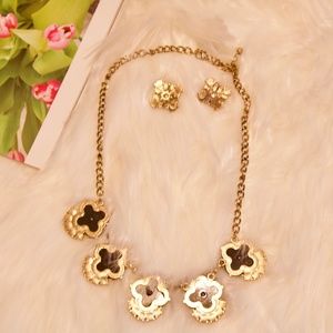 Flower Crystal Statement Necklace And Earrings