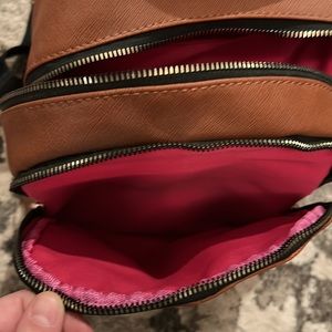 Details: Flowers on front, pink on the inside and gold hardware