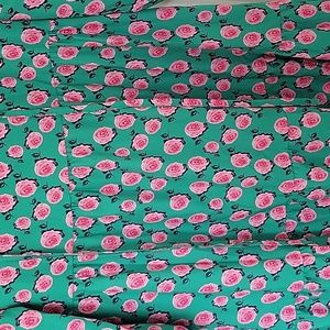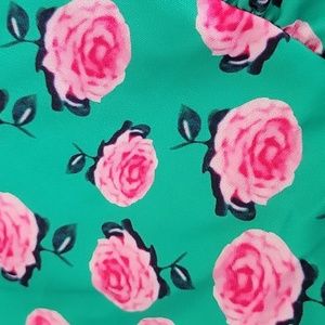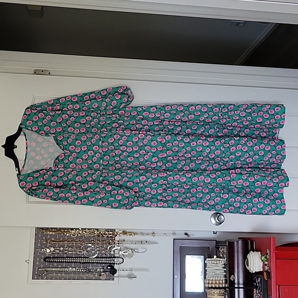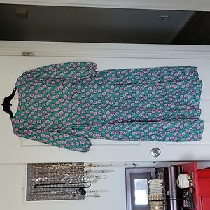 Flower dress. Green with pink flowers. V-neck with tie. 3/4 length sleeve. Tiered style. 95% polyester and 5% spandex. Brand new, never worn. Bought at a boutique so no tags. Lightweight and comfortable. Just not my style. Size XXL.
