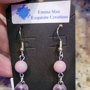 Flower earrings made with purple resin flower, 925 sterling silver hooks with silicone stopper on back, glass purple bead attached.