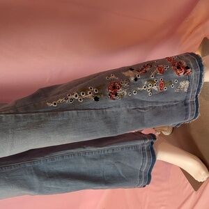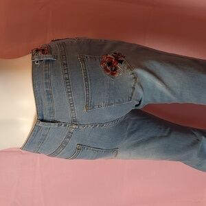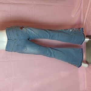 Flower Embroidered Light Blue Wash Y2K Flare Jeans size 4