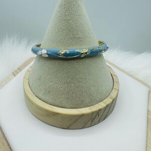 Flower Enamel Cloisonne Blue Bracelet Bangle