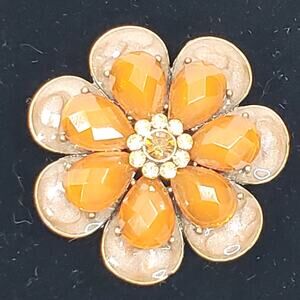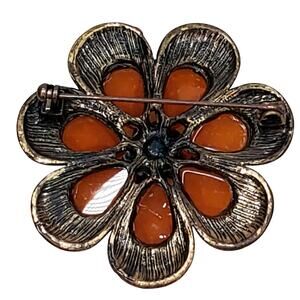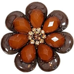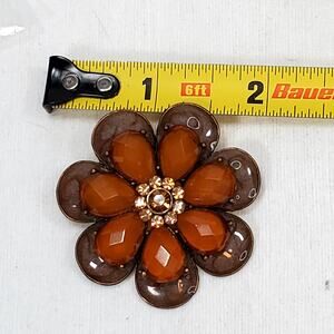Flower Enamel Glass Rhinestone Open Back 2" Unsigned Bloomcore Floral Brooch Pin