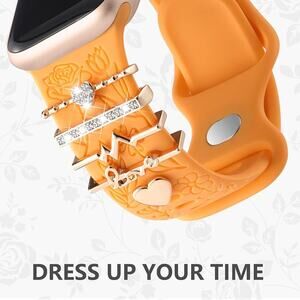 【Elegant Decorative Accessories】DaQin fancy rose engraved bands compatible with apple watch series 10 band come with 5 pcs sparkle metal decorative rings. The decorative ring is made of high grade metal plating engineering, giving your strap a personalized look while being durable and strong. These accessories measure 21mm in length and 3.5mm in height and fit most silicone bands, bringing more attractive matches to your silicone watch bands