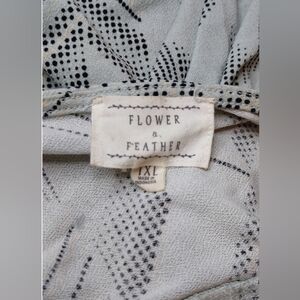 Flower & Feather Green Size 1X Top Gold Zipper Blouse