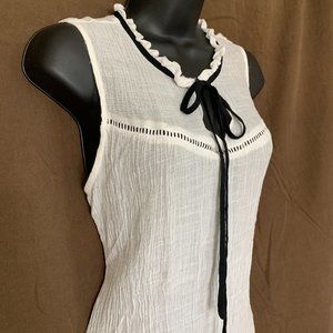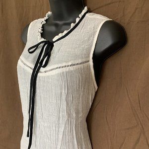 Ruffled Scoop Neck With A Black Tie, Sleeveless, Polyester Blend Crinkle Fabric.