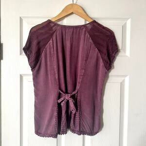 EUC Flower Purple Floral Bohemian Lace Embroidered Button Down Top Free Size