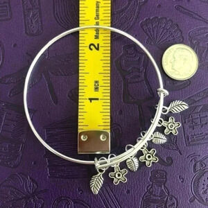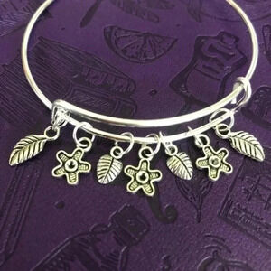 Flower Floral Leaf Nature High Polish Stainless Steel Adjustable Charm Bracelet