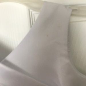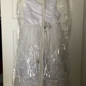 Gorgeous white flower girls dress. Sweet flower and bead detailing. Has a sash in the back to make a bow. Tiny spots on the front chest area and back.. but very small and hardly noticeable. Please see pictures.