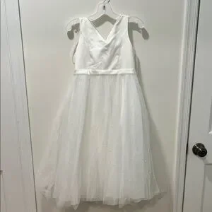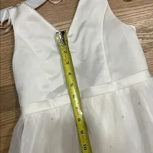 Purchased from David’s Bridal and intended to be used for a wedding by a flower girl; however, it was never worn so there is no wear or tear in this dress. Runs slightly large and has never been tailored or altered.