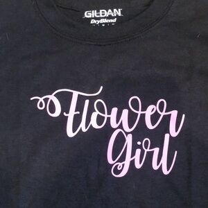 Flower Girl T-Shirt for flower girl at wedding. New without tags, never worn. Black with bright pink lettering. Size Youth Medium