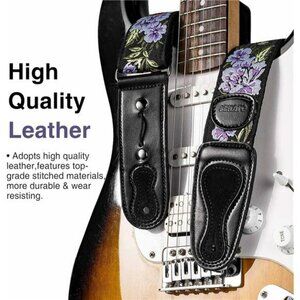 🧿🎸 Soft & Durable: This bass guitar strap adopts cotton material,making the strap soft and breathable.The premium leather ends that are made to stand years of attaching and detaching from your guitars or bass.The quality is beyond your imagination.