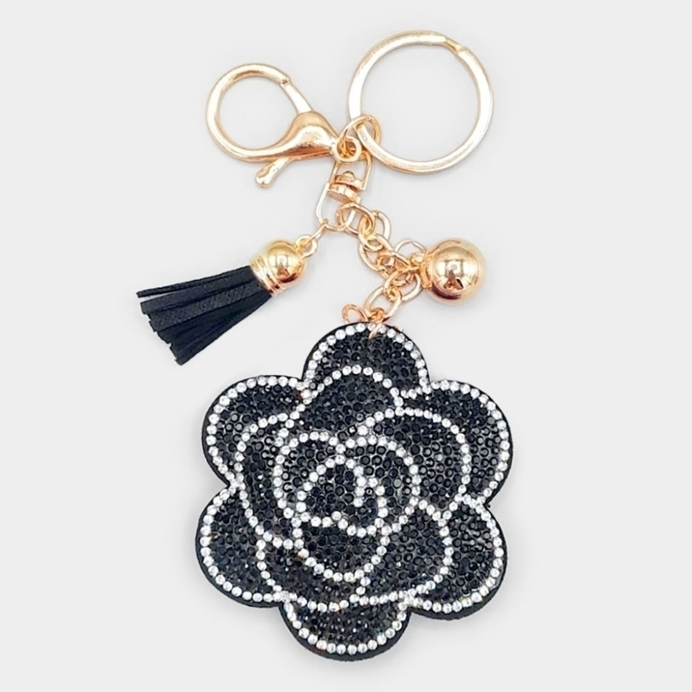 Camellia Flower Keychain, Tassel Keyring, Wristlet Keychain For Women, Rhinestone Embellished Keychain, Ornament Keychain, Bling Keyring, Bling Keychain, Rhinestone Keychain, Sparkling Keyring, Crystal Key Holder, Luxury Bag Charm, Glitter Key Fob, Shiny Key Accessory, Dazzling Purse Charm, Glamorous Keychain, Beaded Key Ring