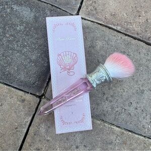 Flower Knows Shells Jewel Transparent Pink Mermaid Makeup Blush Brush. Brand new super beautiful and elegant brush. The brush is in box so I and using my own to show you what it looks like so I don’t have to open it. It has super pretty sea details with bows. One of my favorite blush brushes ever!