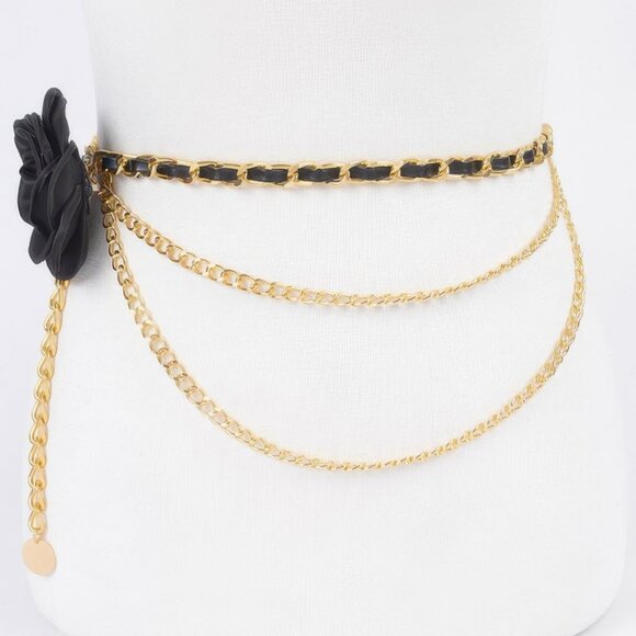 Delicate and feminine, the Flower Metal Double Layered Chain Belt features two fine chains accented with small floral details for an elegant finish. This lightweight accessory adds subtle shimmer and definition to any outfit. The blend of metal and PU offers durability with a touch of softness, making it ideal for both everyday wear and special occasions. Style it with jeans or dresses to elevate your ensemble with a graceful touch.