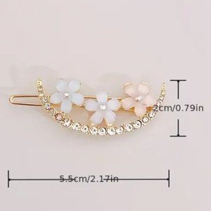 New in original (un-opened) packaging with tag attached. Dainty and delicate moon flower design hair clips have just enough sparkle. The three sweet five-petaled flowers lay comfortably held by a crystal moon. Measures slightly more than 2" across. Nothing makes your wigs look more natural than accessorizing them like you would your own (bio-) hair. Headbands, barrettes, clips, and scrunchies can really make a difference! MSRP $7.99 USD