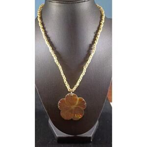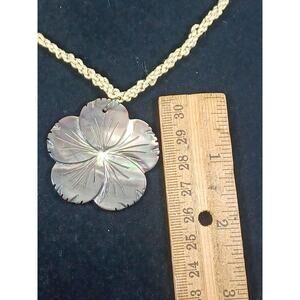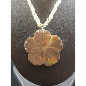 Good Pre-Owned Mother of Pearl Iridescent Flower with hippy style necklace. Beautiful Iridescent Rainbow color Look at all pictures for complete condition Any Questions Please Ask Prior to purchasing Thanks for looking