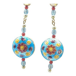 Flower Multi-Color Cloisonne Hand Painted Glass Bead Beaded Dangle Earrings
