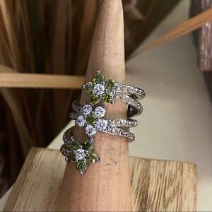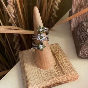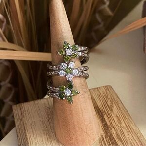 Ruthenium AAA Grade Multi Color CZ Flower Brass Ring Size 6,7