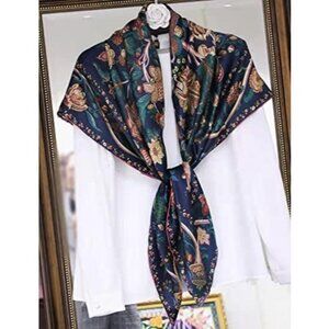 Flower Navy "43" Large Square Silk scarf & Shawl For Women's