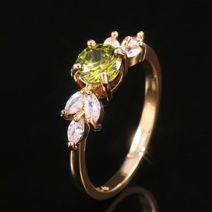 Flower Olive Green Round Marquis Gemstone Zircon Rings for Women, PD129